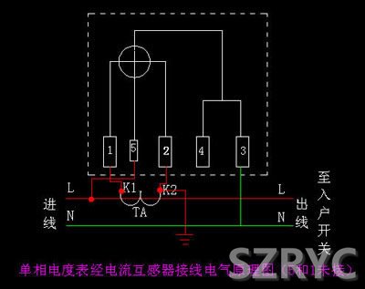 接法有兩種: (1)單相電度表內5和1端未斷開時的接法。 由于表內短接片沒有斷開,所以互感器的K2端子禁止接地。