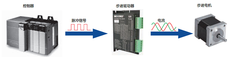 步進(jìn)電機(jī)以一個(gè)固定的步距角轉(zhuǎn)動(dòng),就像時(shí)鐘內(nèi)的秒針。這個(gè)角度稱為基本步距角。鳴志提供兩種基本步距角來作為標(biāo)準(zhǔn)電機(jī):基本步距角為1.8°的兩相步進(jìn)電機(jī)和基本步距角為1.2°的三相步進(jìn)電機(jī)。 • 簡(jiǎn)單的脈沖信號(hào)控制需高精度定位的系統(tǒng)如下所示。控制器發(fā)出的脈沖信號(hào)可以準(zhǔn)確地控制步進(jìn)電機(jī)的轉(zhuǎn)動(dòng)角度和速度。 |