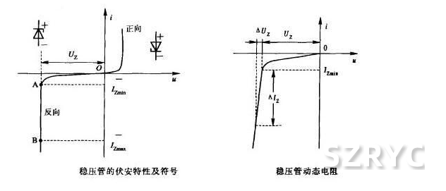 當(dāng)穩(wěn)壓管在反向接法時(shí),當(dāng)反向電壓小于擊穿電壓時(shí),反向電流很小,呈現(xiàn)的動(dòng)態(tài)電阻很大。通常工作電流越大,動(dòng)態(tài)電阻越小,穩(wěn)壓性能越好。