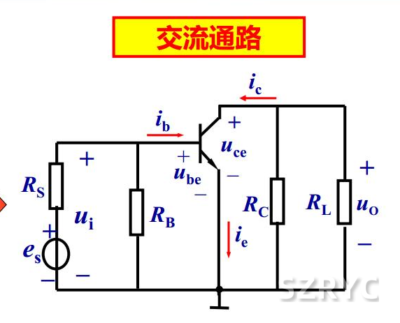 (2)交流通路:將放大電路中的電容視為短路,電感視為開(kāi)路,直流電源視為短路即得。它又被稱(chēng)為動(dòng)態(tài)分析。