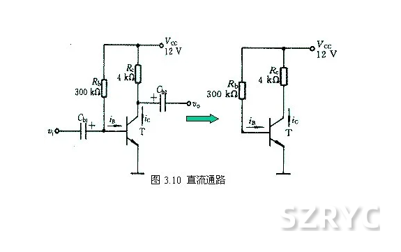(1)直流通路:將放大電路中的電容視為開(kāi)路,電感視為短路即得。它又被稱(chēng)為靜態(tài)分析。