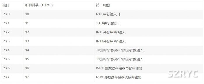 ④P3口(P3.0~P3.7) 內(nèi)部帶上拉電阻的8位多功能雙向I/O端口。