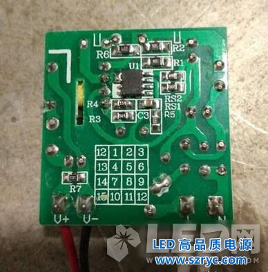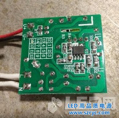 驅(qū)動電源正面。元件的距離拉得比較開,安規(guī)和散熱都比較好控制。