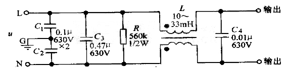LED電源一般采用簡(jiǎn)易式單級(jí)EMI濾波器,主要包括共模扼流圈和濾波電容。