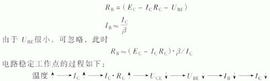 上式說明基極電壓UB只受EC·RB1和RB2 的影響,只要這三個參數(shù)確定,則UB 就可保持穩(wěn)定。