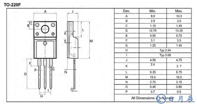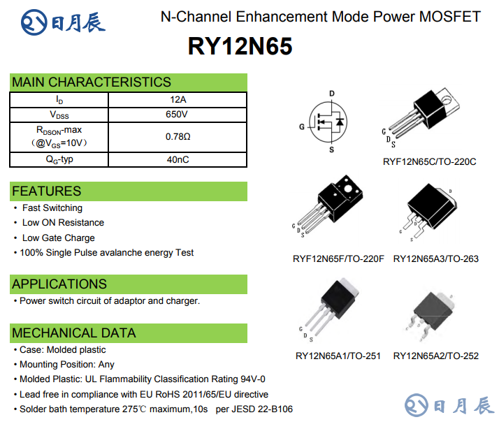 首選從這張圖中我們可以看出,日月辰RYF12N65F是RY12N65當(dāng)中的一款封裝,產(chǎn)品總的有5種封裝。而TO-220F封裝是最常用的其中一種。